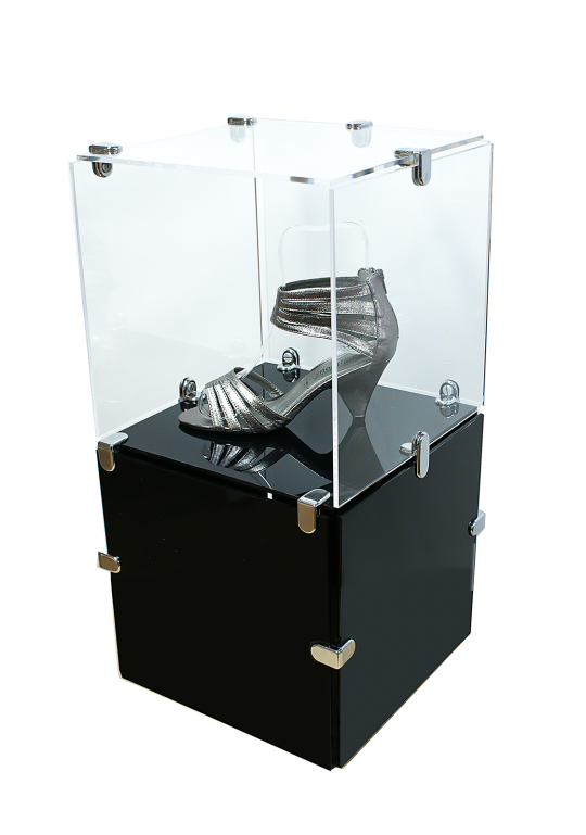 A innovative modular display solution utilising the modern feel of acrylic and chrome.
