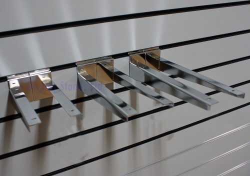 Pair of Slatwall Shelf brackets for use with wood, acrylic or glass shelves.