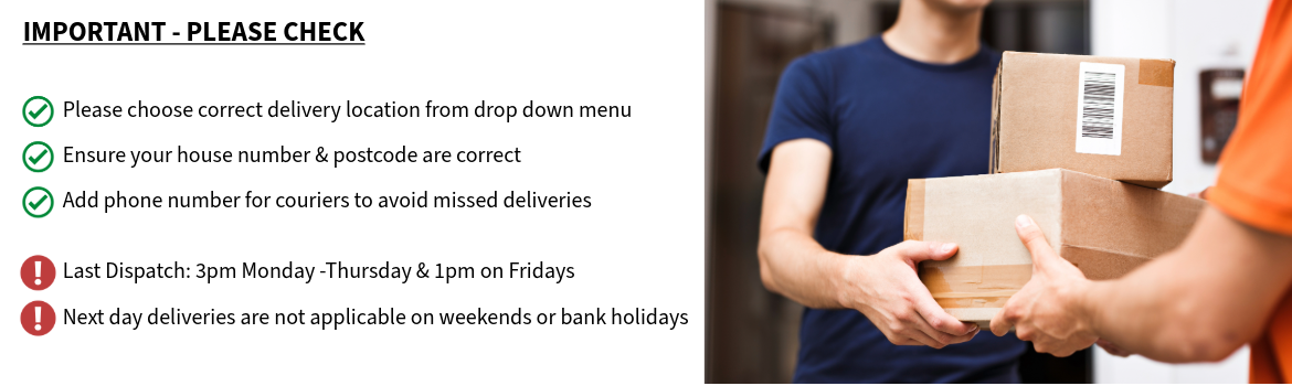 Whilst every effort is made by us to dispatch your items on time, we cannot be held accountable for late or missed deliveries.