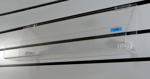This is an acrylic slat fixing shelf for magazines or books, but can be used for boxed products, DVDs, Vape pens and more.