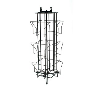 A rotary 12 Pocket 7" x 5" (177mm x 127mm) card stand in black with 4 sides