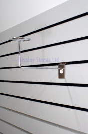 Slatwall Millinery Arm in chrome. Ideal for displaying hats, cap, equestrian riding hats and more.