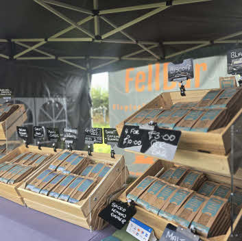 We have designed this counter stand using our popular wood crates but half the height. This 2 x tier display is ideal for farm shops, fairs, markets and shop counters.