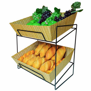 This 2 tier counter basket stand comes complete with two lightweight yet robust wicker print cardboard baskets, which fit the wire frame perfectly.