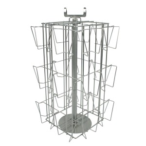 A rotary card stand with 7" x 5" pockets arranged on 4 sides.